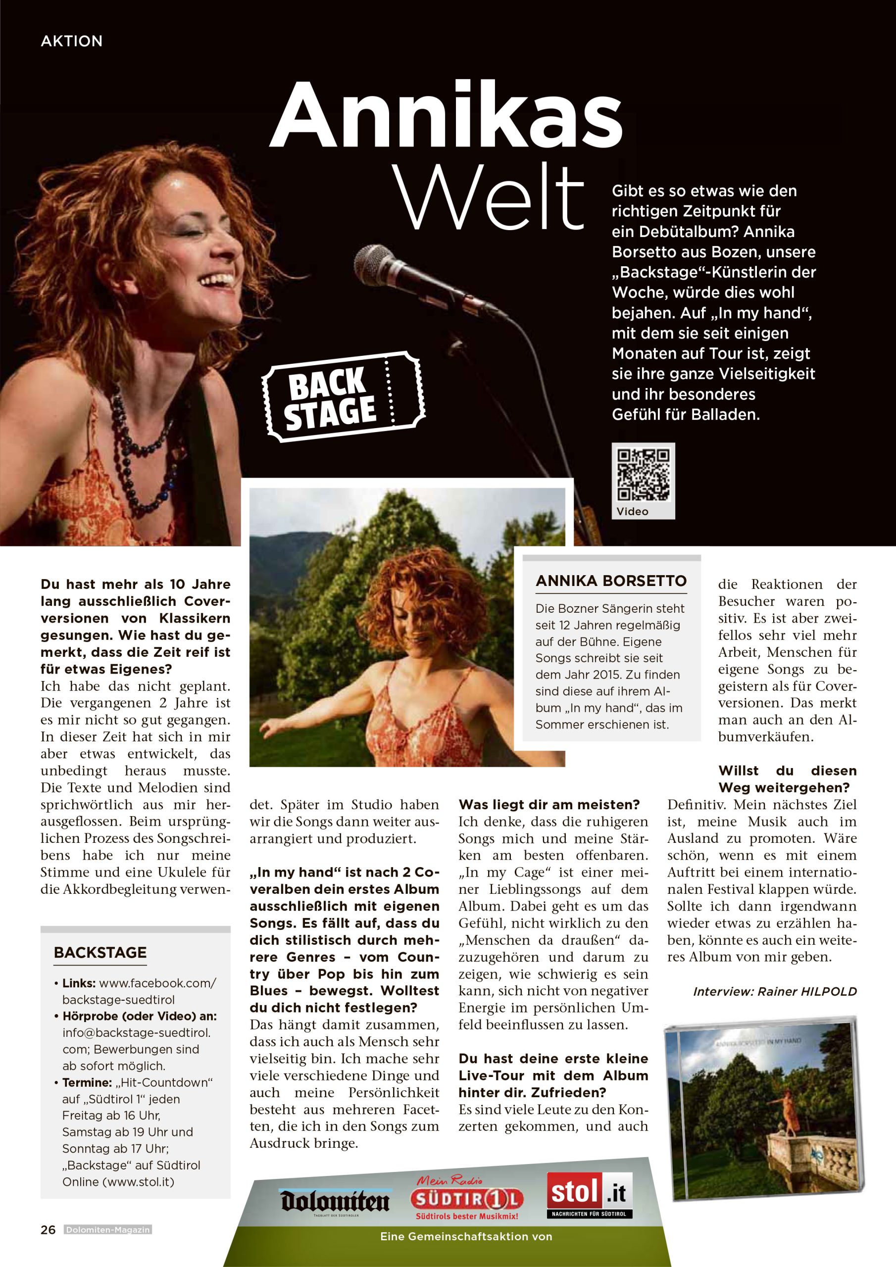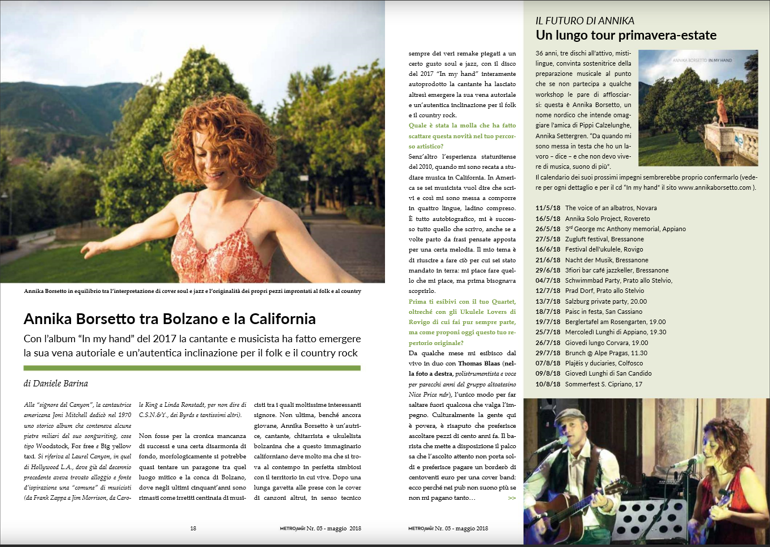 <span class="titlee">In my hand</span> </br> ,Annika Borsetto, primo CD di brani inediti, 2017