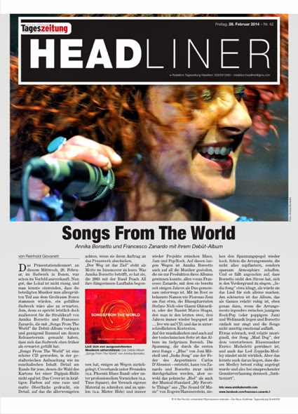 <span class="titlee">Songs from the World, Annika </span> </br> Borsetto e Francesco Zanardo, 2014
