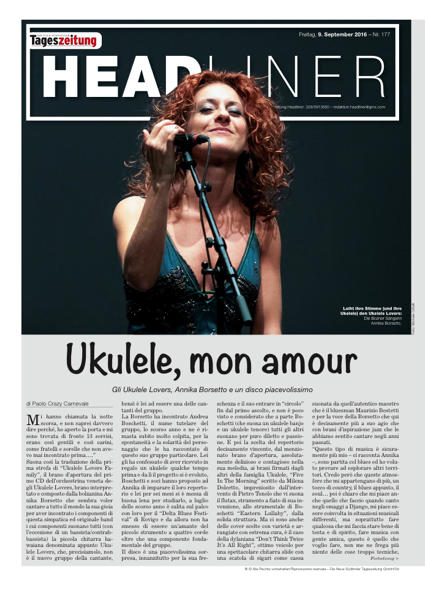 Da vent’anni mi esibisco su palchi locali e internazionali; da circa dieci anni accompagno le mie performance con la chitarra e, soprattutto, con il mio strumento prediletto: l’ukulele.